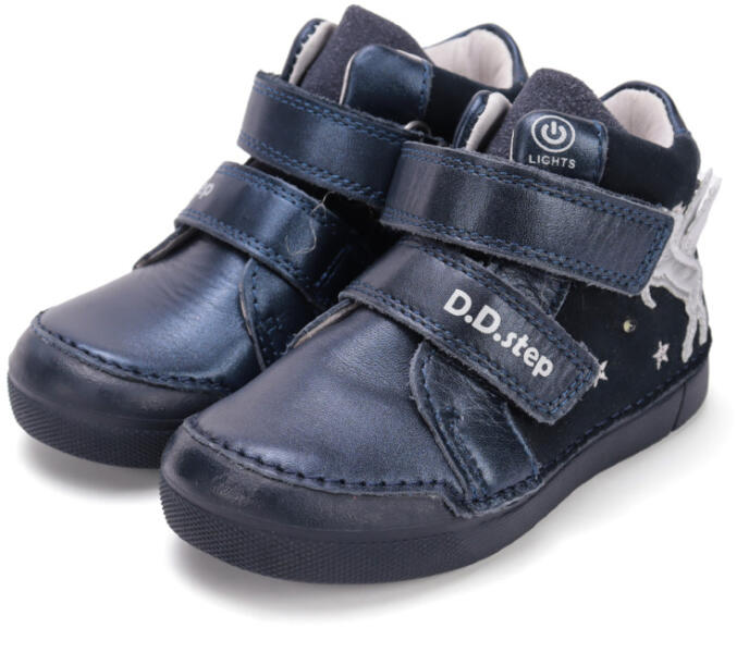 #D. D. Step #DDSTEP #DD STEP #A068-52459O #lány #kislány #LED #LEDES #LED világítós #LED világítással #LED villogó #tavaszi cipő #sneaker #magasszárú cipő #unikornisos #sötétkék színű