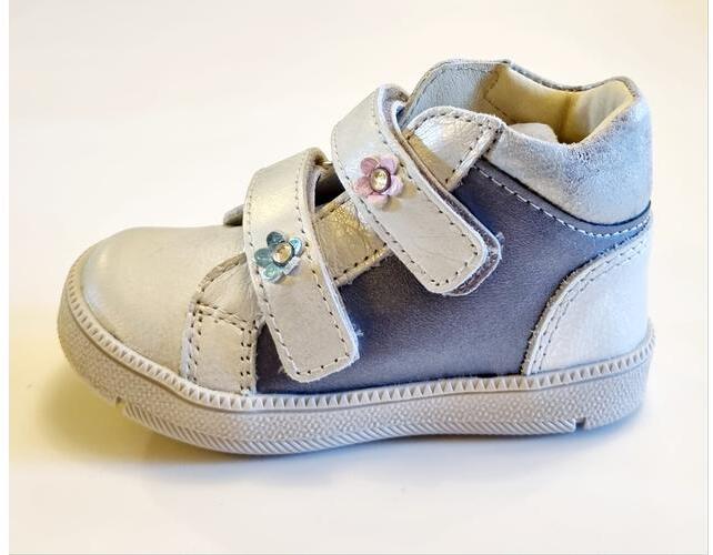 LINEA (magyar) bokafogó gyermekcipő lányoknak ezüst-kék színben,   cipő jellemzői: